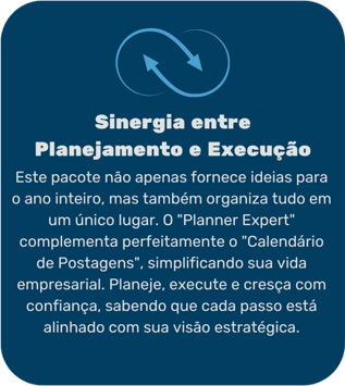 Descubra como o "Planner Expert: Guia de Planejamento Estratégico", junto ao "Calendário de Postagens 2024", revoluciona seu planejamento anual, transformando cada desafio em uma oportunidade de sucesso. Este pacote exclusivo é projetado para: